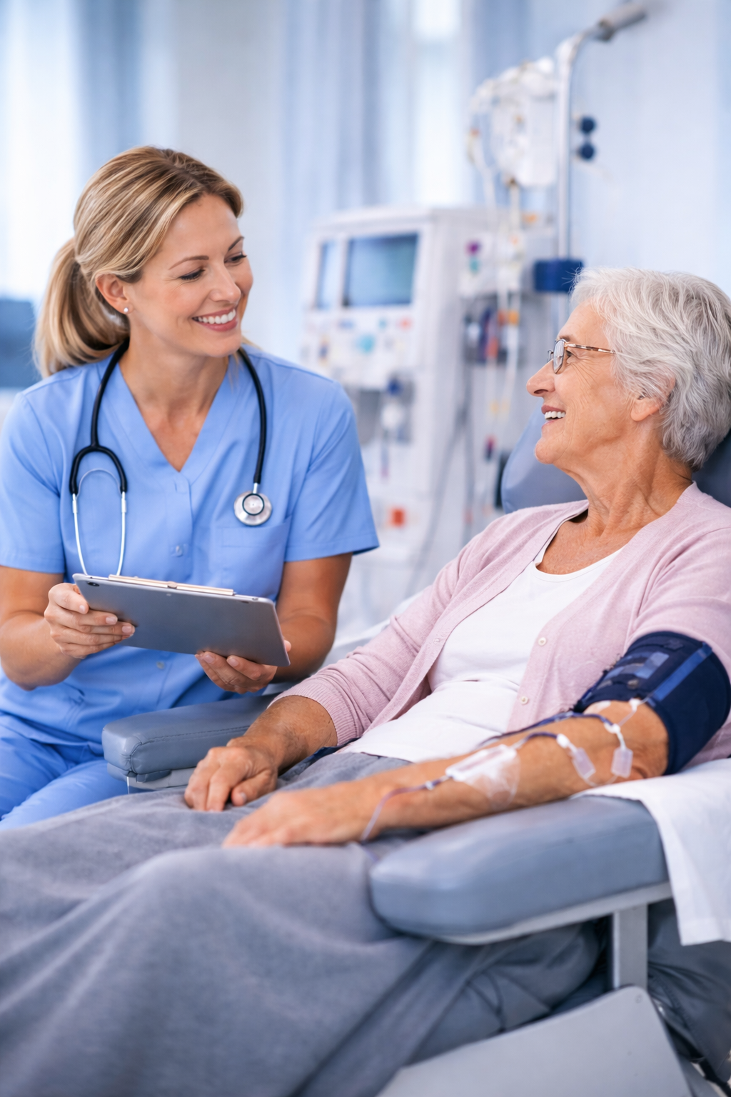 Renvio helps dialysis nurses and in-center teams stay focused on care by supporting the work that happens before, during, and between treatments: